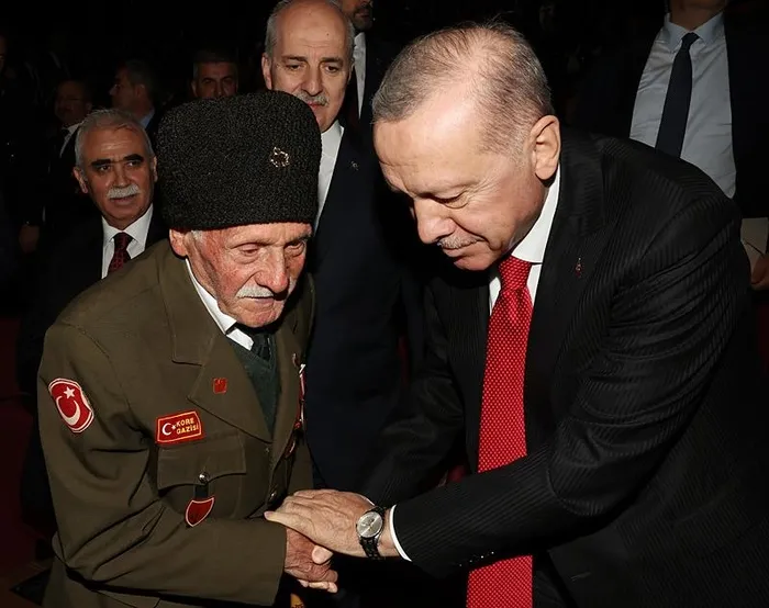 Başkan Erdoğan, Kore Gazisi Pirağa Uzun ile yakından ilgilenerek selamlaştı. Daha sonra Gazi Uzun ile Başkan Erdoğan hatıra fotoğrafı çekildi.